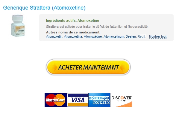 Ou Acheter A Prix Reduit Strattera Atomoxetine. Strattera générique (Atomoxetine) est utilisé pour traiter les Troubles du Déficit de l’Attention avec Hyperactivité (TDAH) Strattera générique est disponible sous la forme de copmrimé et de capsule et vous pouvez les commander ici aujourd’hui pour une fraction de leur prix normal. Strattera générique est aussi commercialisé en tant que: Atomoxetine, Attentin, Tomoxetin.